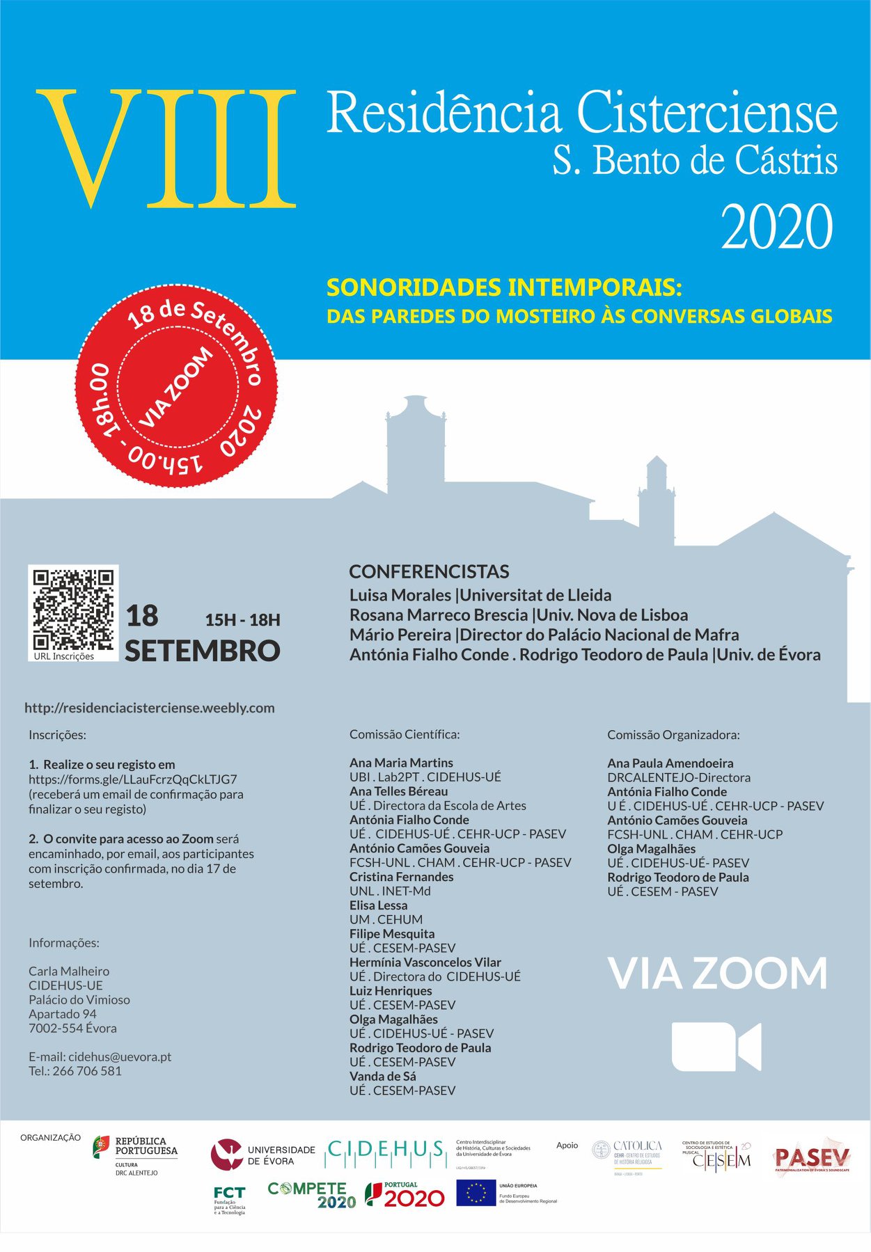 This year’s edition of the Cistercian Residency for the Monastery of São Bento de Cástris (on the outskirts of Évora) will take place in the ZOOM platform due to the constraints of the COVID-19. This year we celebrate eight years of this event, established in the Évora region as one of the most important manifestations of this kind regarding the history of feminine monastic life throughout the centuries. For the first year the event will be globally available through the internet and the number of conferences was reduced to four that will take place in one afternoon.